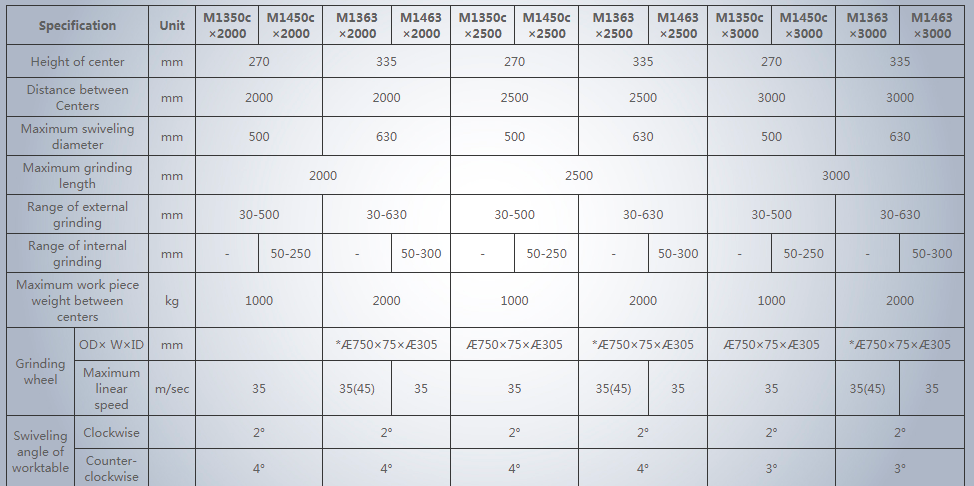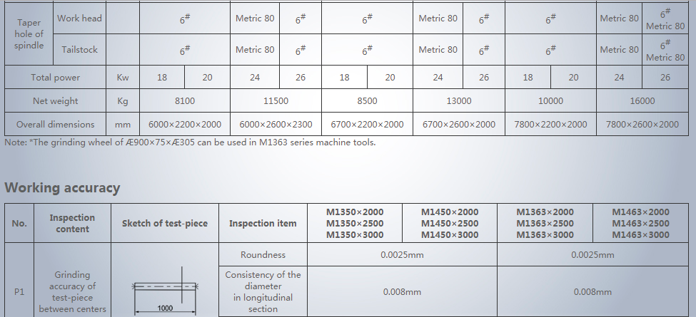 M1350/1363 type cylindrical grinding machines are suitable for grinding external cylindrical surfaces of rotary work-pieces of cylinder and taper.