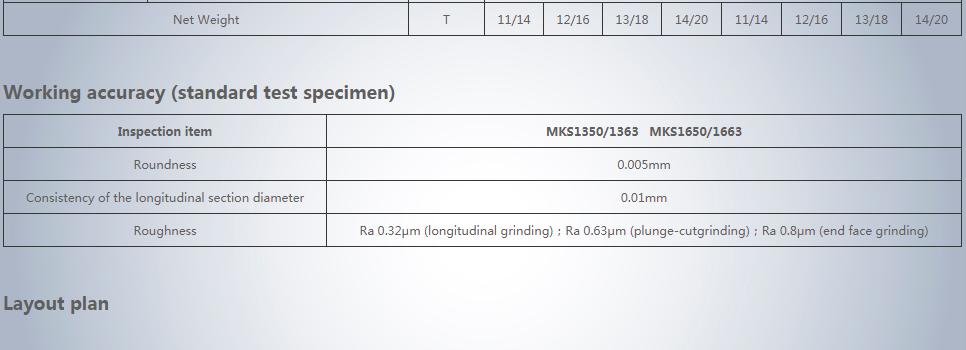 MKS1350/1363 and MKS1650/166 CNC (endface) cylindrical grinding machines are large-size CNC machine tools independently designed, developed and manufactured through the Company; domestic advanced technologies. They are characterized by the universalization, high-degree modularization, high rigidity, high efficiency and high adaptability. Being large-size CNC cylindrical grinding machines of convenient operations, reliable performance and high processing precision, the series of machine tools are suitable for production occasions with batches or bulks of production for parts of large-size shaft types.